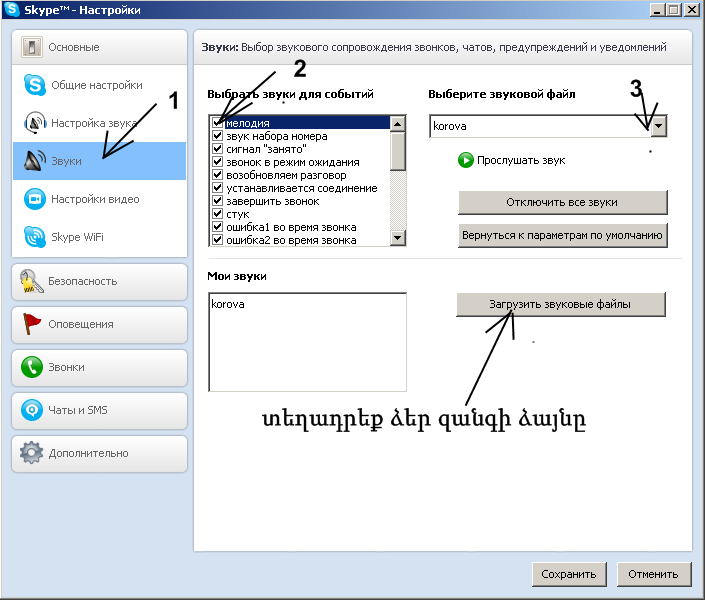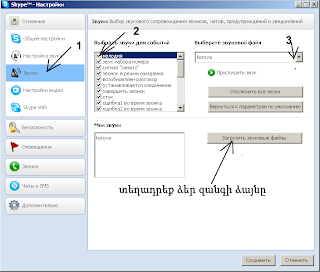 Հաճախ հարց է առաջանում, թե ինչպես փոխել skype-ի զանգը: Դրա համար անհրաժեշտ է մտնել skype կատարել նկարում բերված քարլերը: