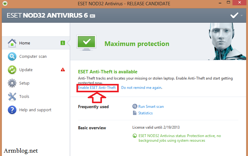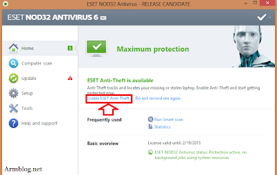 4. Սեղմեք Enable ESET Anti-Theft կոճակը: