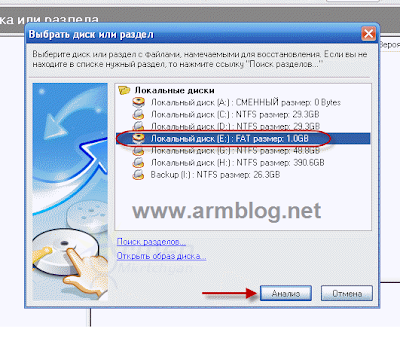 1. Բացեք ծրագիրը և նշեք այն սկավառակի (կրիչի) տառը, որտեղից ջնջել եք ֆայլերը: